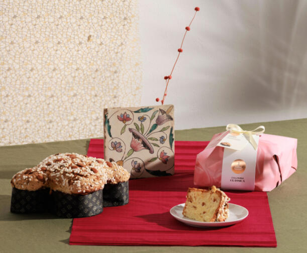 Le colombe pasquali provengono dalla storica pasticceria Fiasconaro, eccellenza siciliana dei lievitati artigianali.
